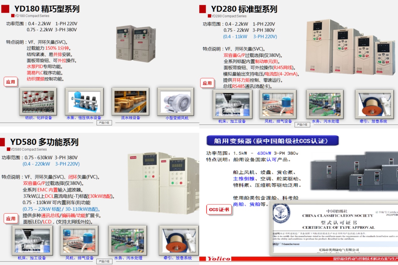 - YD3000N-CCS船用:獲得CCS中國船級社認證,支持船用推進系列、空調(diào)水泵等傳動設備。