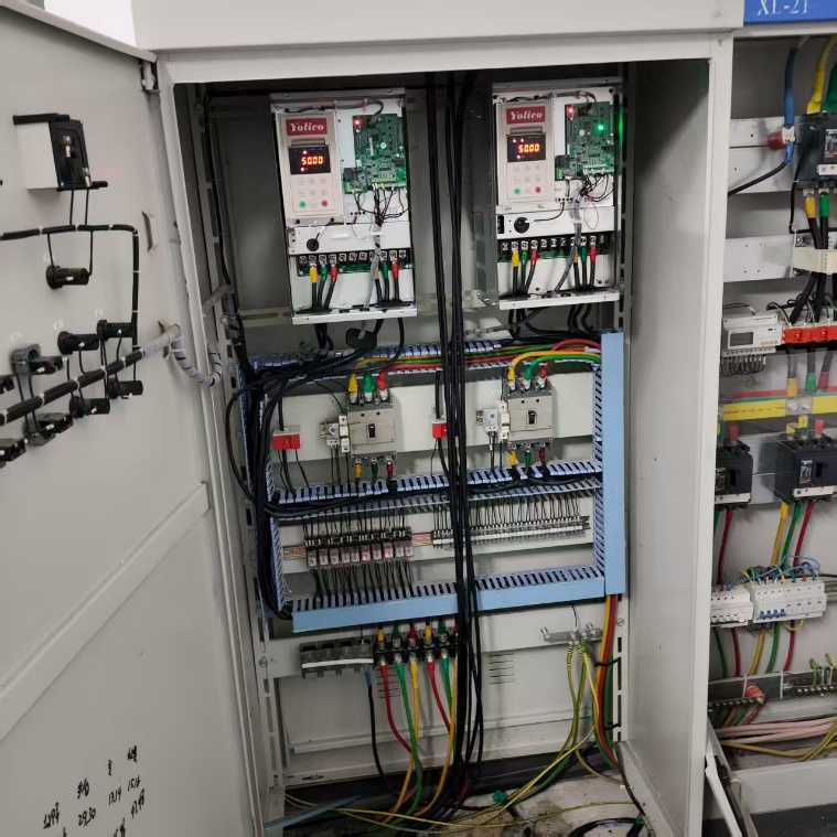變頻器和電機(jī)之間存在一定距離,變頻器和電機(jī)都要做好接地的準(zhǔn)備?,F(xiàn)場變頻器帶45KW電機(jī),DI1給定端子啟動,AO1頻率輸出,一組繼電器TA1/TC1反饋運行信號,另一組TA2/TC2反饋報警信號。RST接電源,UVW接電機(jī)